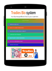 Tradies Bio Ā® is an organisation that promotes the Business Credentials of Tradies in business. The QR code scan comes with a Lifetime guarantee. Refer Terms and Conditions. Tradies Bio attend and support Tradies functions,